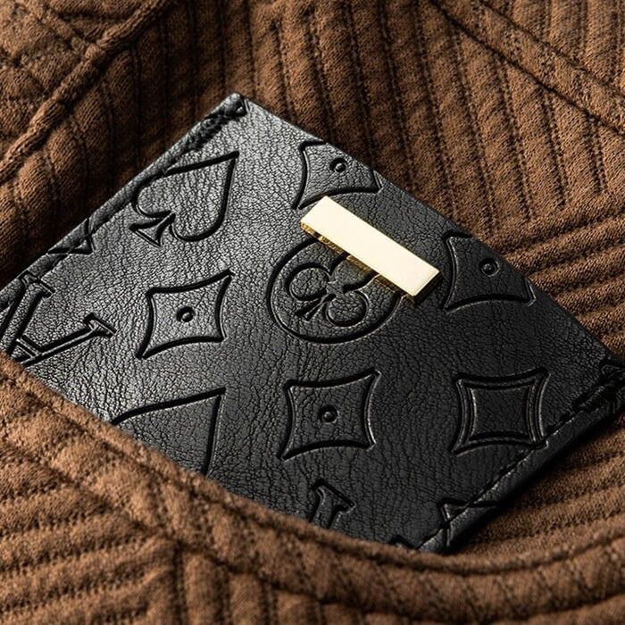 • Design: 5-pocket style with genuine leather front pocket detail